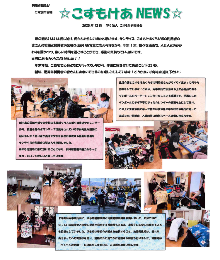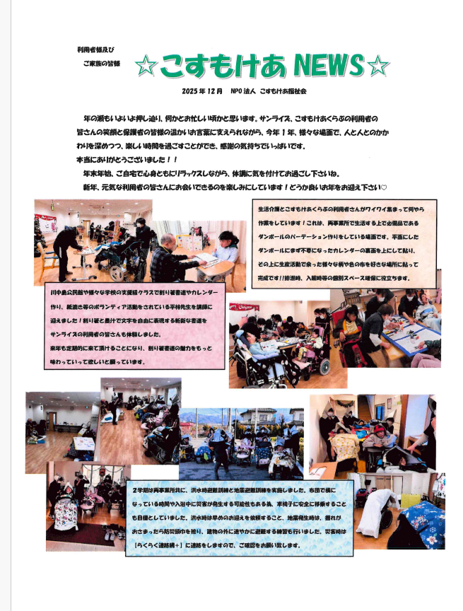 たくさんのボランティアの方々がサンライズを訪れ、コーラスや楽器の素敵な演奏で、クリスマス会を盛り上げて下さいました!