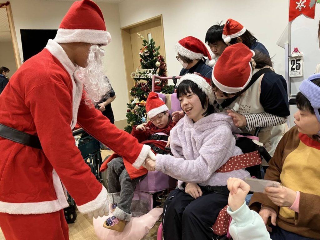 サンタさんに握手をしてもらったり、プレゼントをもらって、大喜びの利用者さん達でした。